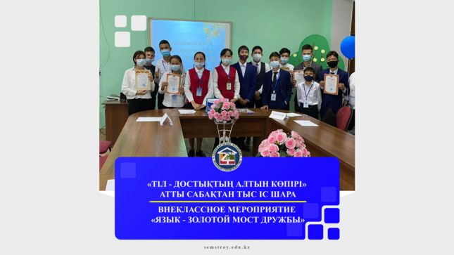 5 сентября в КГКП «Колледж строительства» в рамках празднования Дня языков народа Казахстана среди студентов 1 курса было проведено внеклассное мероприятие «Язык –золотой мост дружбы». Наиболее активные участники мероприятия были поощрены благодарственными грамотами.