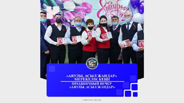 5 марта в нашем колледже был проведен праздничный вечер «Аяулы, асыл жандар», посвящённый Международному Женскому Дню — 8 Марта. С поздравительным словом на вечере выступил директор колледжа К.К. Тастекеев и вручил грамоты от акима города.