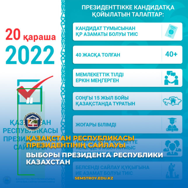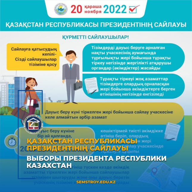 Выборы Президента Республики Казахстан Мероприятия, НовостиАвтор: Askar-info06.10.2022Выборы Президента Республики Казахстан.