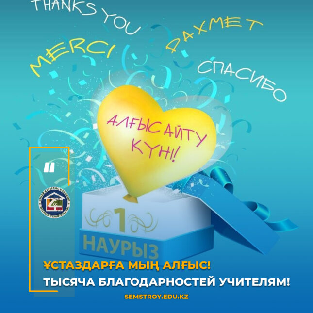 Сегодня, в первый день весны, поздравляем всех с прекрасным праздником – с Днем Благодарности! #алтынжүрек @abai_imc @abai_bilim_basqarmasy Посмотреть эту публикацию в Instagram Публикация от Колледж строительства (@qurylyskoleji)
