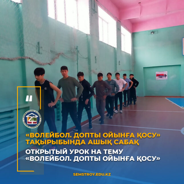 2 марта 2023 года на неделе общеобразовательных дисциплин по физической культуре преподаватель Апбасов А.Г. провел внутриколледжный открытый урок на тему «Волейбол. Допты ойынға қосу» с группой М-21.