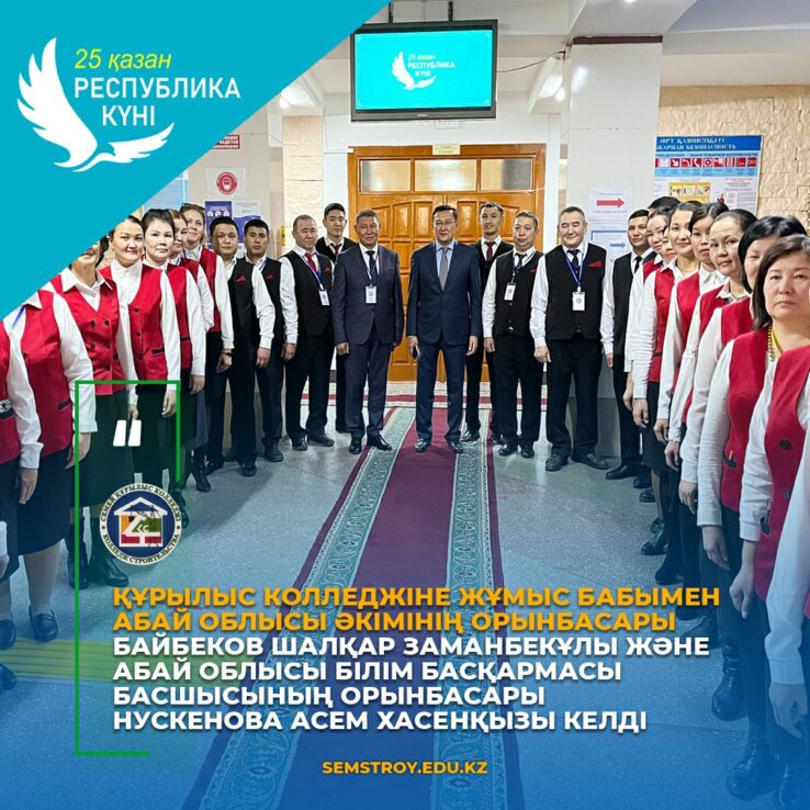 21.10.22 года Колледж строительства с рабочим визитом посетили: Байбеков Шалкар Заманбекович — заместитель акима области Абай и заместитель руководителя управления образования области Абай — Нускенова…