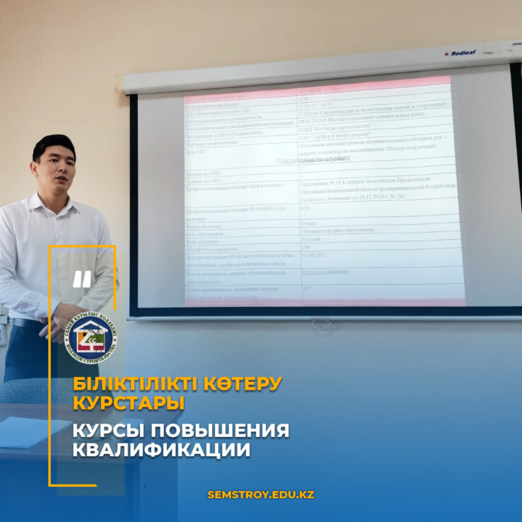 Преподаватель КГКП «Колледж строительства» прошёл курсы повышения квалификации на тему: «Педагог системы технического и профессионального, послесреднего образования: совершенствование трудовых функций», организованный НАО «Talap».