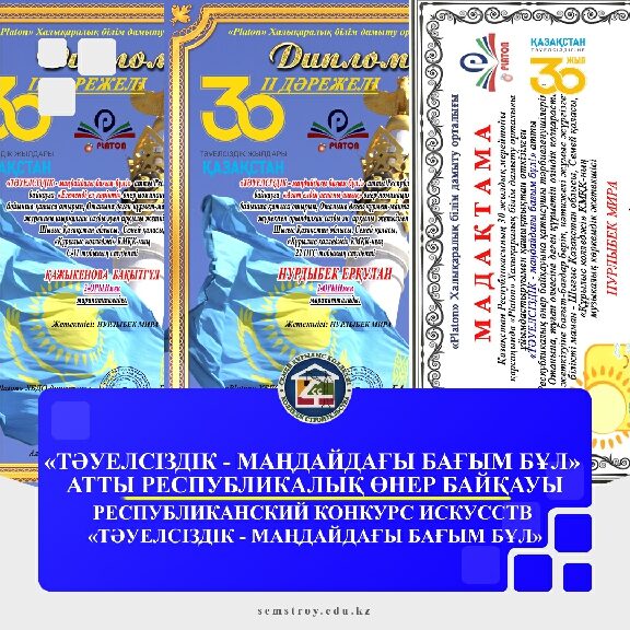 В канун 30-летнего юбилея Независимости Республики Казахстан в дистанционном республиканском конкурсе искусств «Тәуелсіздік — маңдайдағы бағым бұл», организованном Международным центром развития образования «Platon», студент группы…