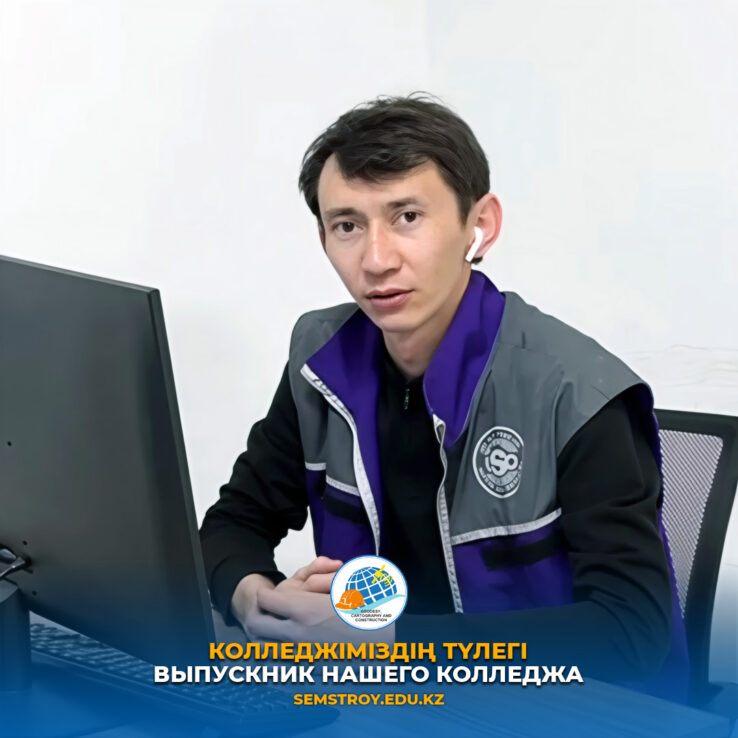 Выпускник нашего колледжа ТҰРСЫН СЫМБАТ — квалифицированный специалист строительной отрасли. В настоящее время работает в «Национальном центре качества дорожных активов».